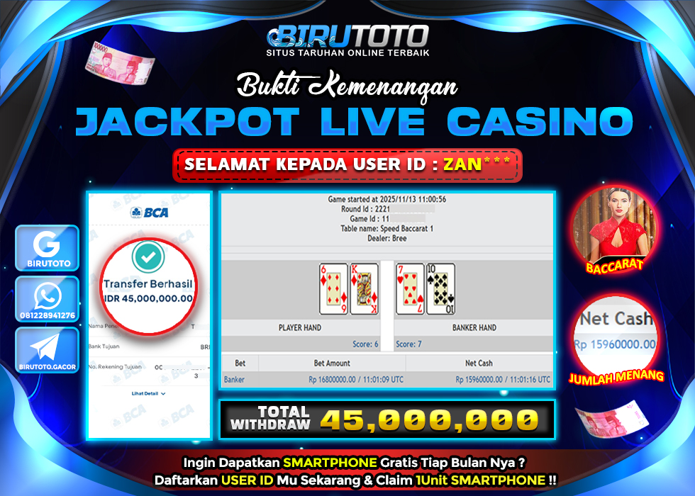Bukti JP Live Casino Member Birutoto 13 November 2025