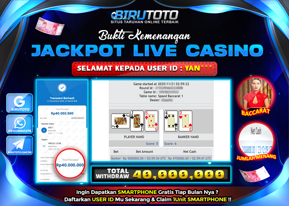 Bukti JP Live Casino Member Birutoto 21 November 2025