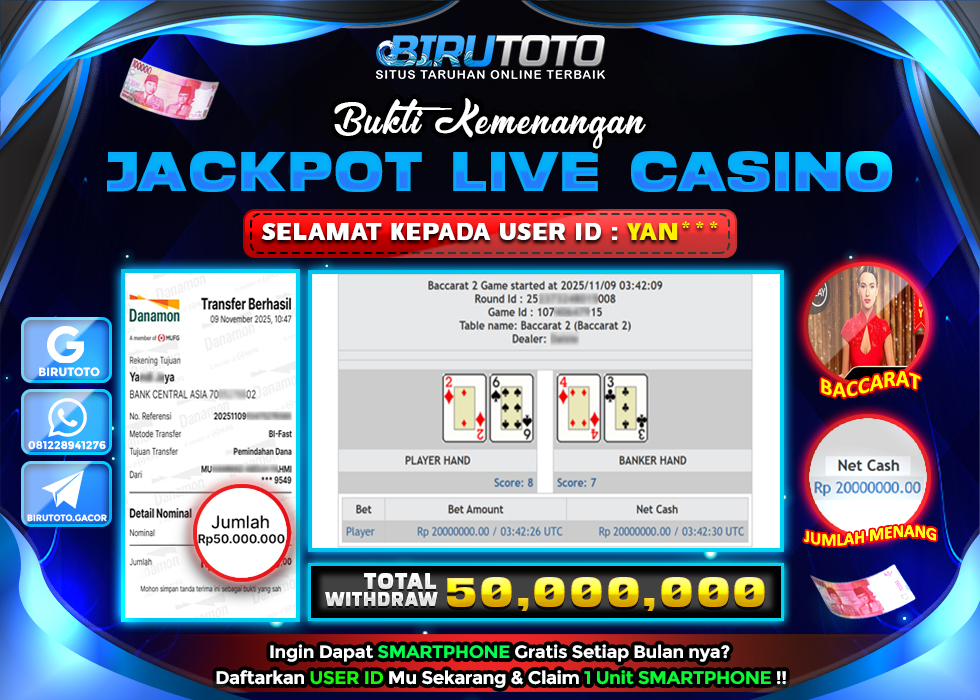 Bukti JP Live Casino Member Birutoto 07 Januari 2025