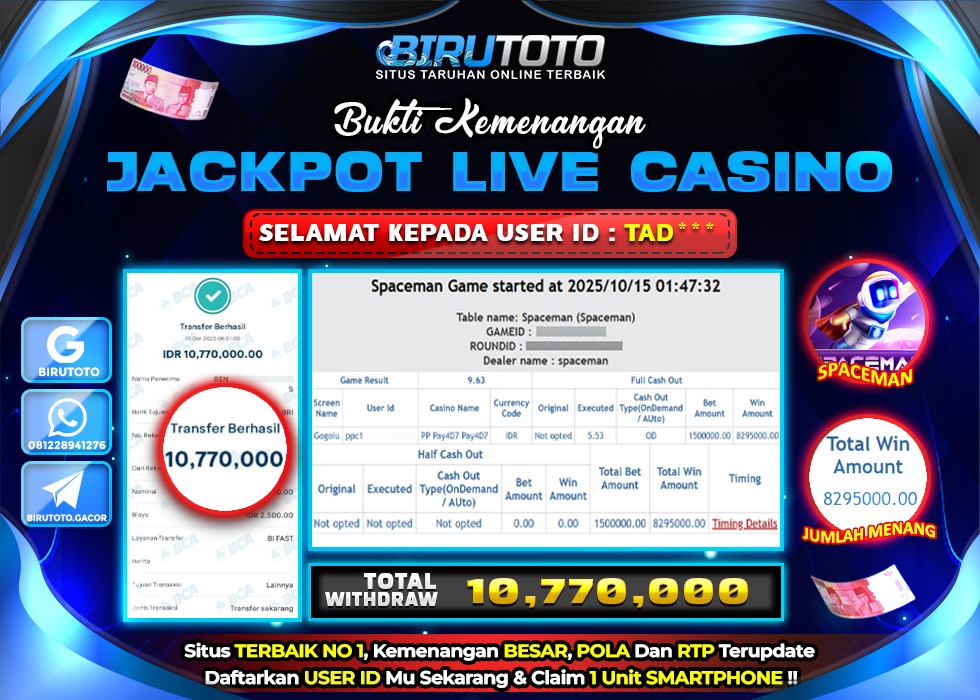 Bukti JP Live Casino Member Birutoto 04 Mei 2025