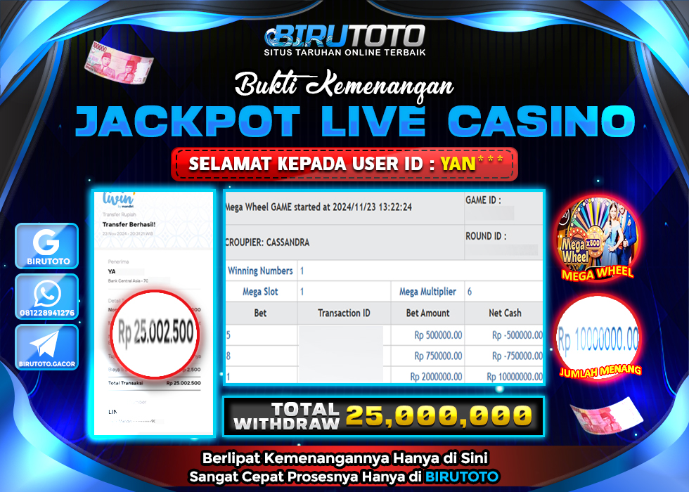 Bukti JP Live Casino Member Birutoto 23 November 2024