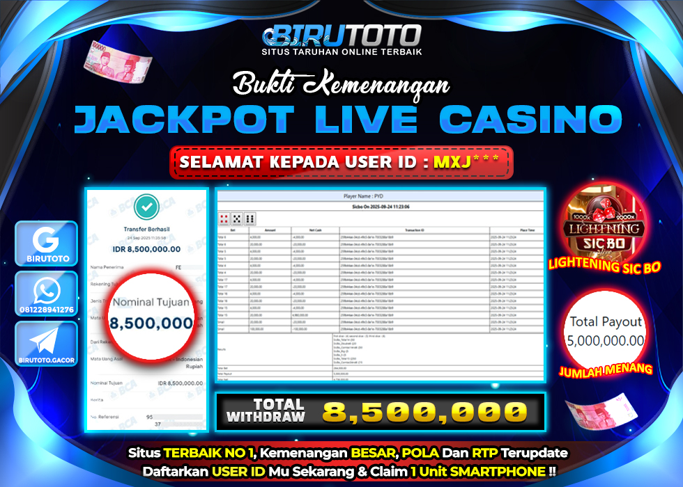 Bukti JP Live Casino Member Birutoto 124 September 2025