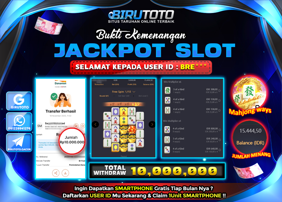 Bukti menang slot adalah bukti bahwa seorang pemain telah berhasil memenangkan hadiah besar atau jackpot dalam permainan slot online. Untuk meningkatkan peluang Anda untuk memenangkan jackpot, pilihlah permainan slot dengan jackpot yang besar, pelajari pola dan strategi bermain, kelola keuangan dengan baik, manfaatkan bonus dan promo, dan bermain dengan sabar dan bijak. Dengan mengikuti tips-tips ini, Anda akan meningkatkan peluang Anda untuk memenangkan hadiah besar atau jackpot dalam permainan slot online.