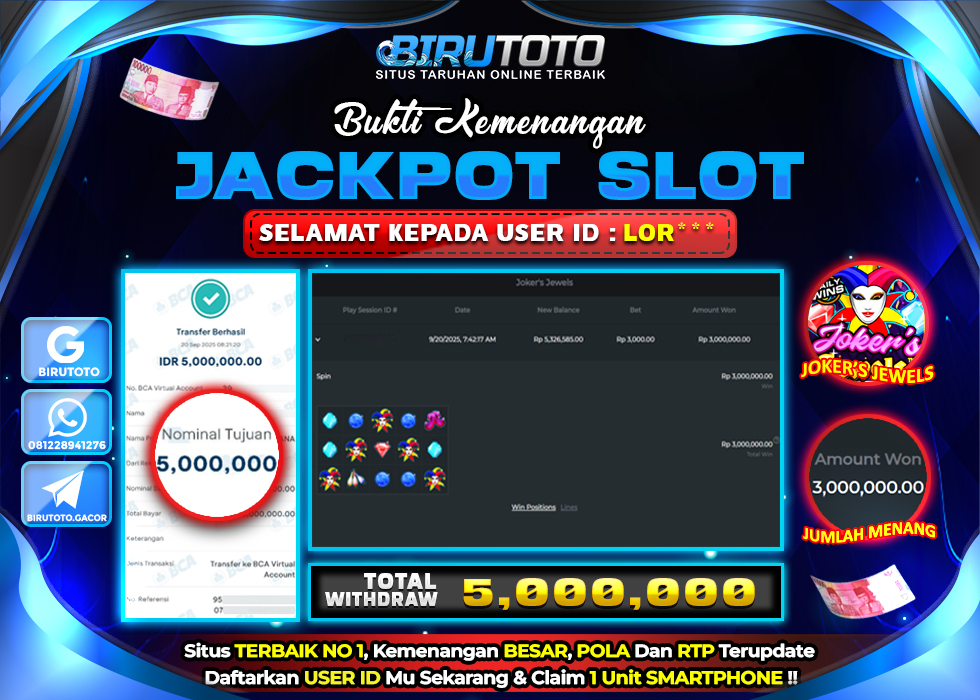 - Pilihlah Slot dengan Jackpot yang di birutoto Besar Cobalah untuk memilih permainan slot dengan jackpot yang besar. Meskipun peluang Anda untuk menang jackpot mungkin lebih kecil, hadiah yang diperoleh jika Anda berhasil menang slot sangat besar.