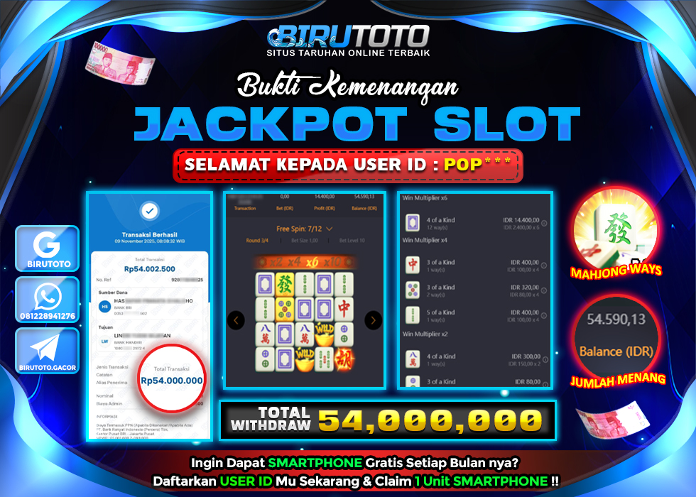 Bukti JP Slot Mahjong Ways BIRUTOTO 09 November 2025 Rp 54.000.000, – LUNAS