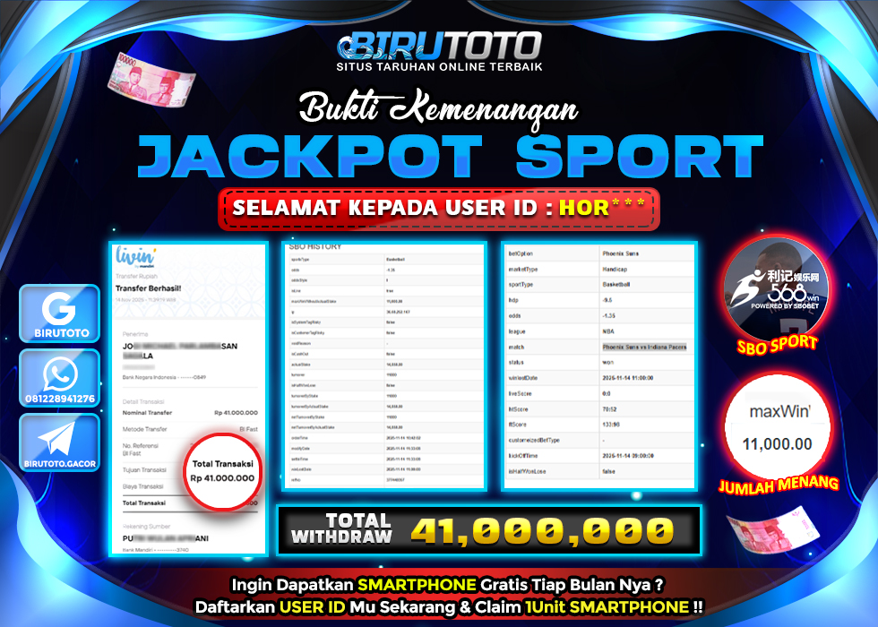Bukti JP Sport Basketball BIRUTOTO 14 November 2025 Rp 41.000.000, – LUNAS