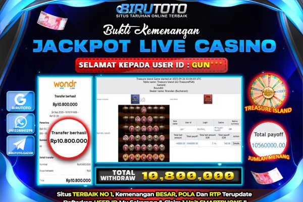 Bukti JP Live Casino Member Birutoto 06 Oktober 2025 BUKTI JP MEMBER BIRUTOTO DEPOSIT : Rp 5.000.000 TOTAL WITHDRAW : Rp 60.000.000 GAME : LIVE CASINO – MEGA WHEEL Memenangkan Jackpot Permainan slot online di BIRUTOTO sangat populer di kalangan pemain judi online di seluruh dunia. Di Indonesia sendiri, slot online menjadi salah satu…
