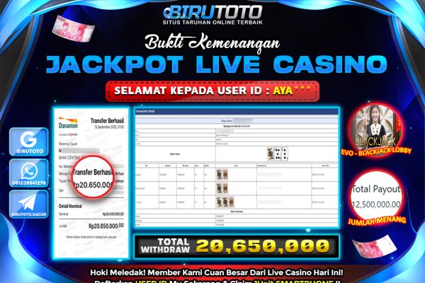 Bukti JP Live Casino Member Birutoto 18 September 2025 BUKTI JP MEMBER BIRUTOTO DEPOSIT : Rp 1.000.000 TOTAL WITHDRAW : Rp 30.000.000 GAME : LIVE CASINO -KOREAN ALL-IN SPEED BACCARAT 1 Memenangkan Jackpot Permainan slot online di BIRUTOTO sangat populer di kalangan pemain judi online di seluruh dunia. Di Indonesia sendiri, slot online menjadi salah…