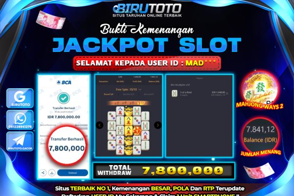 Bukti JP Slot Member Birutoto 17 Oktober 2025 BUKTI JP MEMBER BIRUTOTO DEPOSIT : Rp 500.000 TOTAL WITHDRAW : Rp 8.010.000 GAME : PG SOFT – Mahjong Ways 2 Memenangkan Jackpot Permainan slot online di BIRUTOTO sangat populer di kalangan pemain judi online di seluruh dunia. Di Indonesia sendiri, slot online menjadi salah satu…