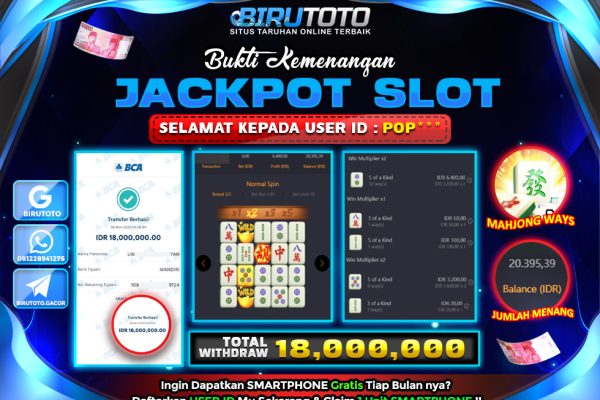 Bukti JP Slot Mahjong Ways BIRUTOTO 06 November 2025 Rp 18.000.000, – LUNAS