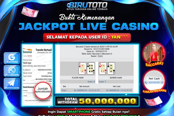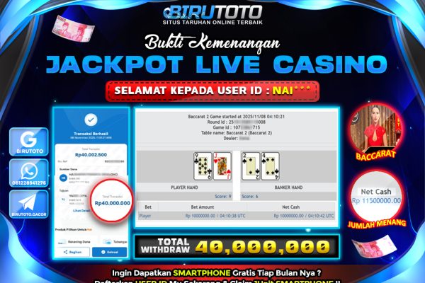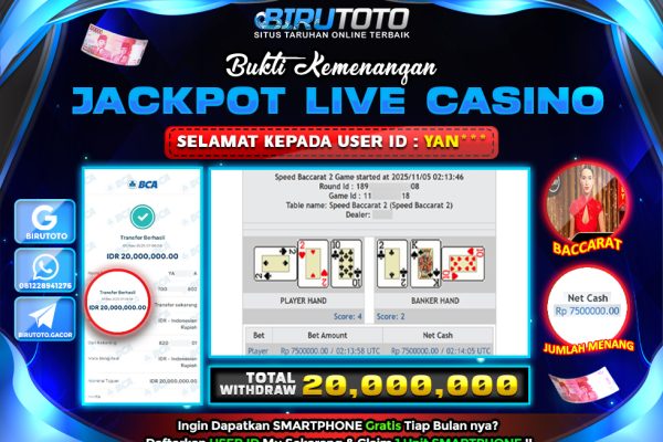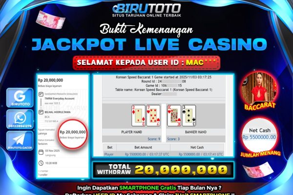 Bukti JP Live Casino Baccarat BIRUTOTO 11 November 2025 Rp. 20.000.000,- LUNAS