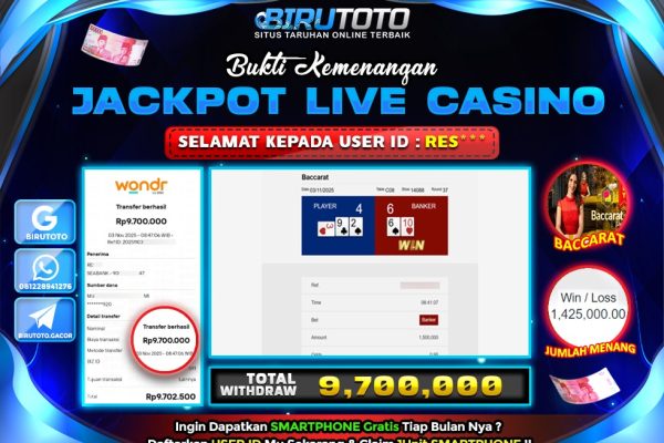 Bukti JP Live Casino Member Birutoto 11 November 2025 BUKTI JP MEMBER BIRUTOTO DEPOSIT : Rp 550.000 TOTAL WITHDRAW : Rp 20.000.000 GAME : LIVE CASINO – Live Casino Baccarat Memenangkan Jackpot Permainan slot online di BIRUTOTO sangat populer di kalangan pemain judi online di seluruh dunia. Di Indonesia sendiri, slot online menjadi salah…