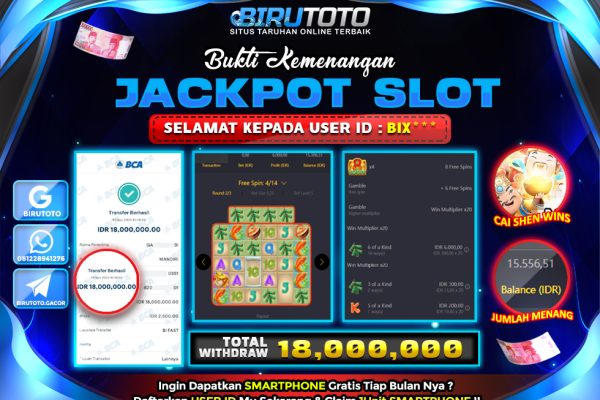 Bukti JP Slot Cai Shen Wins BIRUTOTO 19 November 2025 Rp 18.000.000, – LUNAS