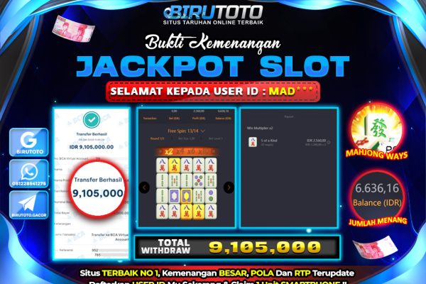 Bukti JP Slot Mahjong Ways BIRUTOTO 13 Oktober 2025 Rp 15.020.000, – LUNAS