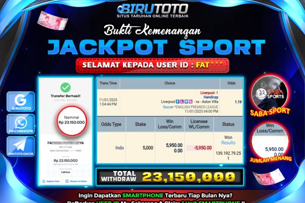 Bukti JP Sport Member Birutoto 02 November 2025 BUKTI JP MEMBER BIRUTOTO DEPOSIT : Rp 400.000 TOTAL WITHDRAW : Rp 23.150.000 GAME : SPORT – SABA SPORT MIX PARLAY Memenangkan Jackpot Permainan slot online di BIRUTOTO sangat populer di kalangan pemain judi online di seluruh dunia. Di Indonesia sendiri, slot online menjadi salah satu…